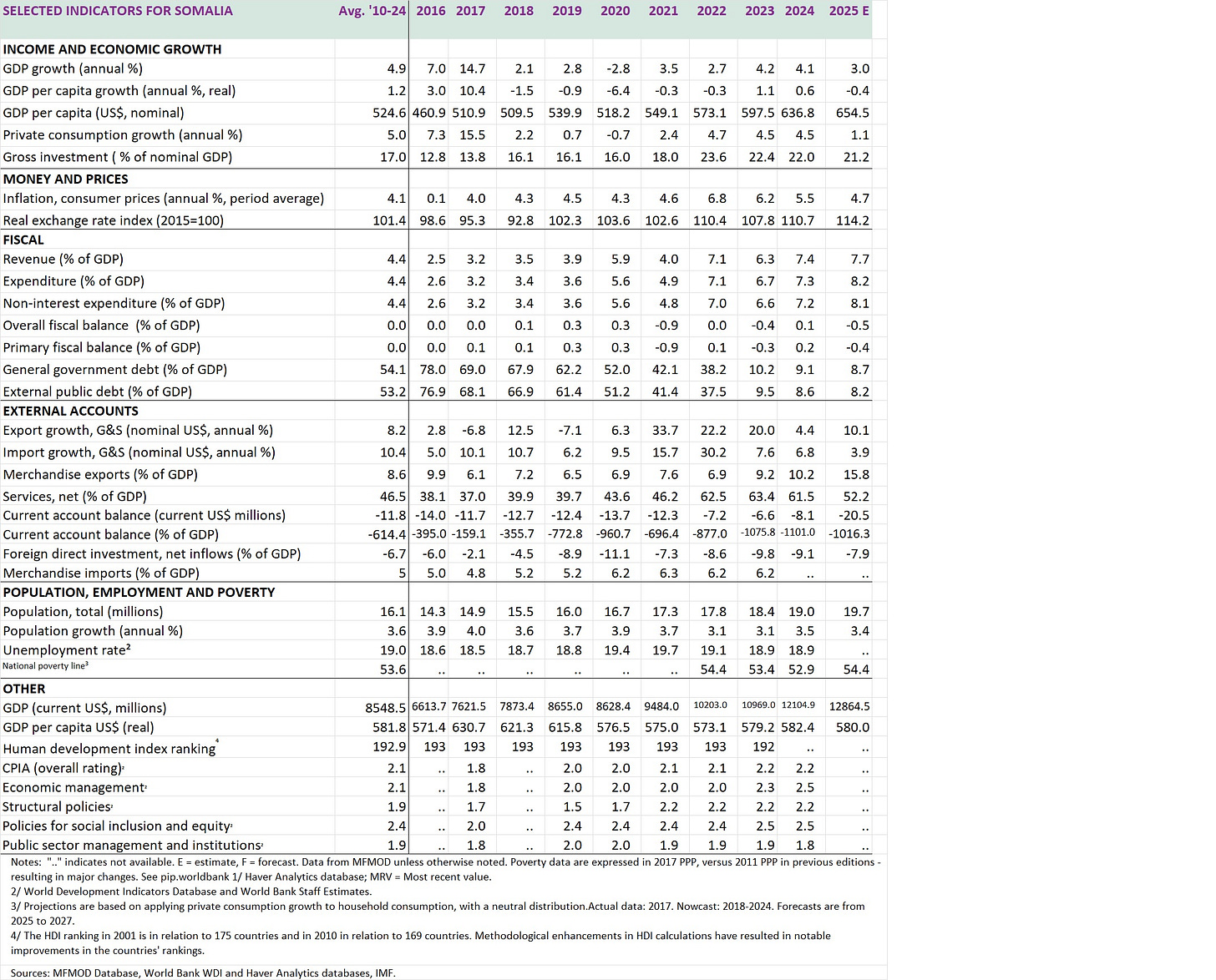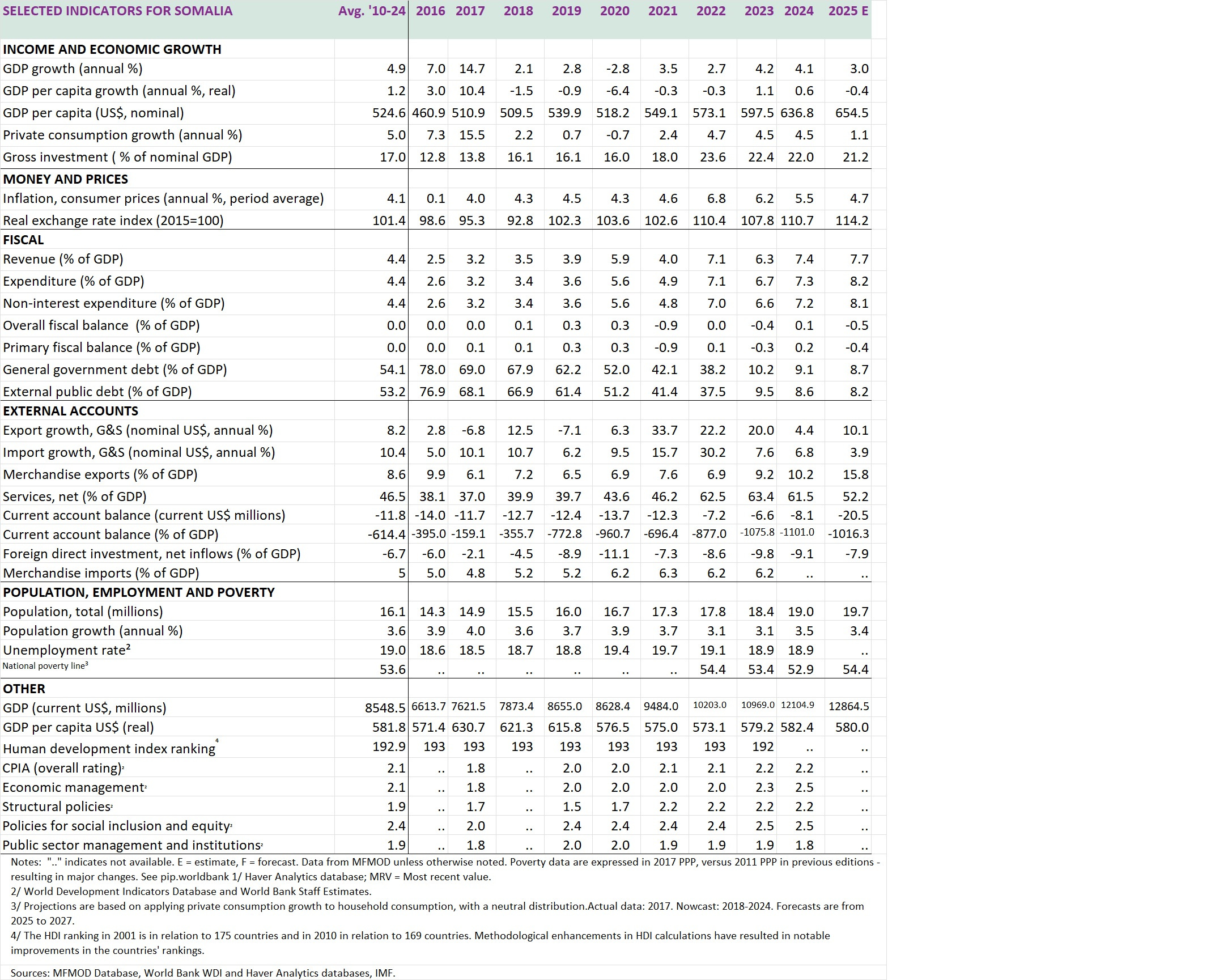 This week, the World Bank published its “Macro Poverty Outlook” for Sub-Saharan Africa* as part of its Annual Meetings Reports. As I went through the data, I came across a table on Somalia. As this data was not explained in the case of Somalia, I decided to write an extended explanatory piece on the country’s unique situation. The data table for Somalia is reproduced below and explained in detail in what follows.